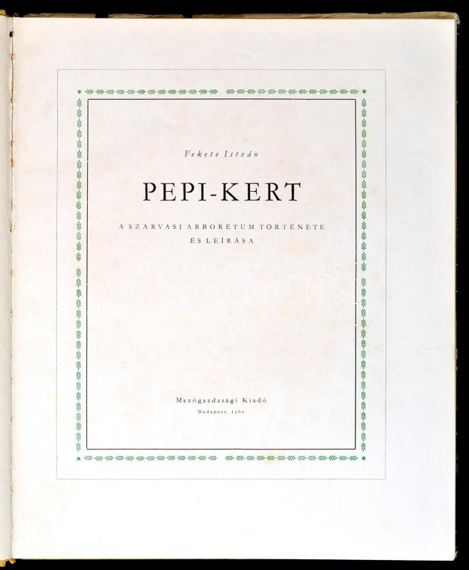 Fekete István: Pepi-kert. A Szarvasi Arborétum története és leírása. Bp., 1960, Mezőgazdasági Kiadó. Kiadói egészvászon kötés, papír védőborítóval, jó állapotban.
