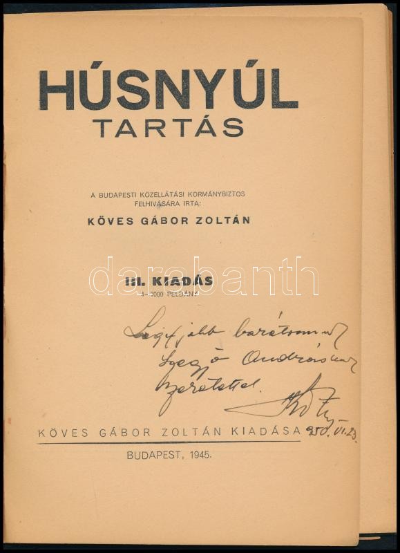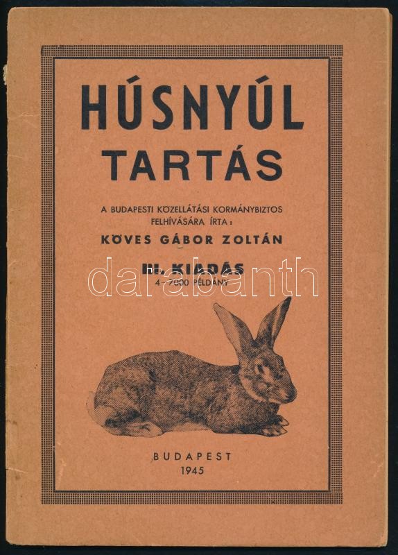 Köves Gábor Zoltán: Húsnyúl tartás. Bp.,1945, Köves Gábor Zoltán. Harm... https://www.darabanth.com/de/333-Fernauktion/333.0/Bucher/Bucher-Gastronomie-und-Gartnerei~1500007/Koves-Gabor-Zoltan-Husnyul-tartas-Bp-1945-Koves-Gabor-Zoltan-Harmadik-kiadas-Kiadoi~II1869089