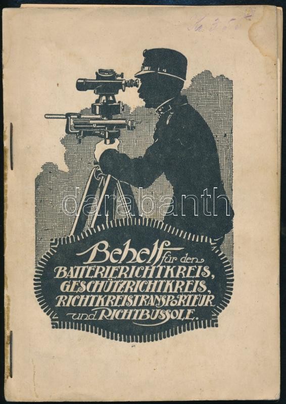 Dr. Ribáry Géza: Richtbehelf für den Batterierichtkreis, Geschützrichtkreis, Richtkreis-Transporteur und Richtbussole. Szalay János illusztrácóival. Bp.,1915, kn., nyn., 2+91+5 p. Német nyelven. A borítója hiányzik, egy kihajtható tábla kijár, 8 lap kijár és egy lap (53/54.) A könyv utolsó 5 oldalán a könyvre vonatkozó ceruzás jegyzetekkel, kiegészítésekkel.