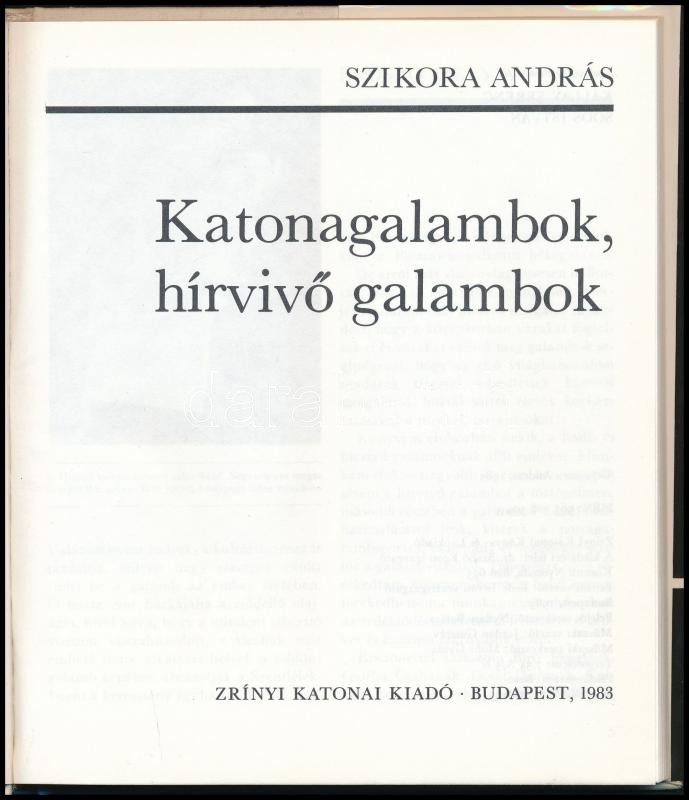 Szikora András: Katonagalambok, hírvivő galambok. Bp.,1983, Zrínyi. Ki... https://www.darabanth.com/de/333-Fernauktion/333.0/Bucher/Bucher-Militaria~1500005/Szikora-Andras-Katonagalambok-hirvivo-galambok-Bp-1983-Zrinyi-Kiadoi-egeszvaszon-kote~II1868231