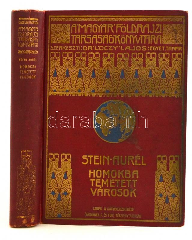 Stein Aurél: Homokba temetett városok. Régészeti és földrajzi utazás Indiából Kelet-Turkesztánba 1900-1901-ben. Lóczy Lajos előszavával. Fordította: Halász Gyula. Magyar Földrajzi Társaság Könyvtára. Bp., é.n., Lampel R. (Wodianer F. és Fiai),1 t.+267 p.+ 14 t. Fekete-fehér képekkel illusztrálva. Kiadói dúsan aranyozott egészvászon sorozatkötésben, kissé kopott borítóval, térkép-melléklet nélkül.