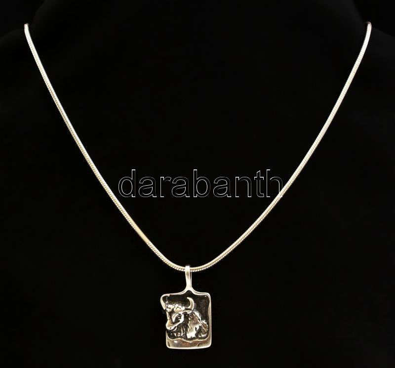 Ezüst(Ag) kígyó nyaklánc, bika függővel, jelzett, h: 43 cm, 3×1,8 cm, ... https://www.darabanth.com/de/333-Fernauktion/333.0/Juwelen/Juwelen~500001/EzustAg-kigyo-nyaklanc-bika-fuggovel-jelzett-h-43-cm-3C3971-8-cm-netto-14-g~II1861122
