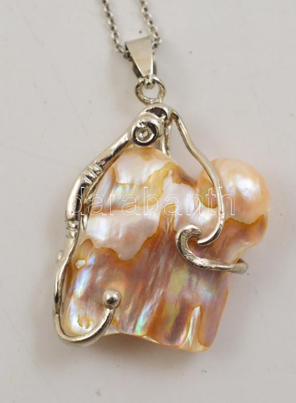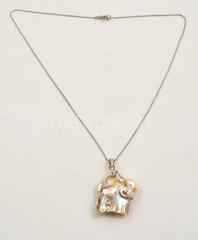 Beschreibung: Ezüst(Ag) nyaklánc, jelzett, h: 46 cm, nettó: 1,6 g + gyöngyház medál fém foglalatban