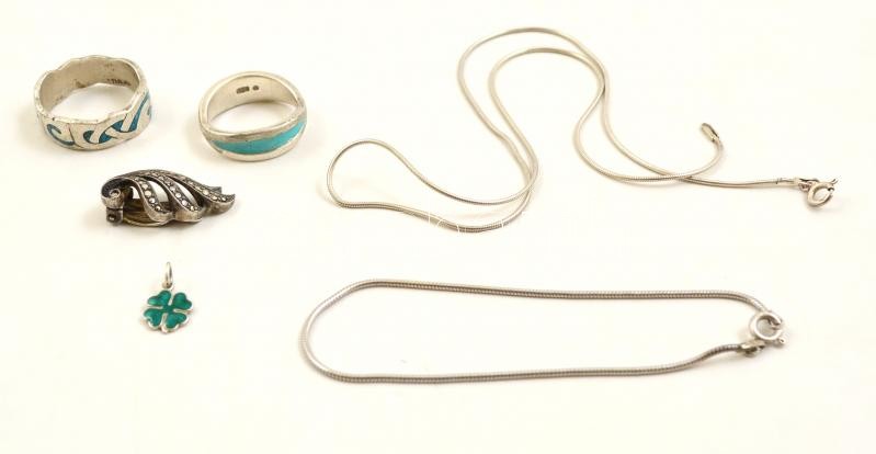 Beschreibung: Ezüst(Ag) vegyes tétel: gyűrű, nyaklánc, karkötő, stb., 6 db, bruttó: 23,6 g