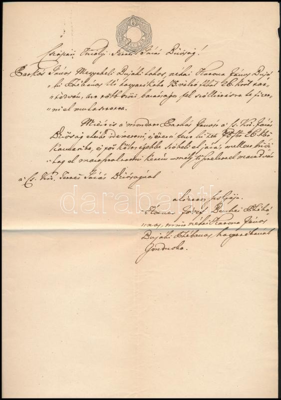 1854 Magyar nyelvű járásbírósági keresetlevél 6 kr szignettával https://www.darabanth.com/de/333-Fernauktion/333.0/Kunst-Dokumente-andere-Sammelgebiete/Dokument~500019/1854-Magyar-nyelvu-jarasbirosagi-keresetlevel-6-kr-szignettaval~II1864928