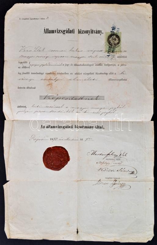 1870 Jogász államvizsgálati bizonyítványa. https://www.darabanth.com/de/333-Fernauktion/333.0/Kunst-Dokumente-andere-Sammelgebiete/Dokument~500019/1870-Jogasz-allamvizsgalati-bizonyitvanya~II1862771