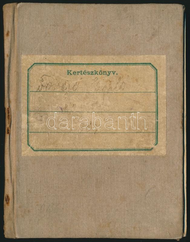 1904 Munkás igazolvány. (kertészkönyv) Kissé megviselt állapotban. https://www.darabanth.com/de/333-Fernauktion/333.0/Kunst-Dokumente-andere-Sammelgebiete/Dokument~500019/1904-Munkas-igazolvany-kerteszkonyv-Kisse-megviselt-allapotban~II1871573