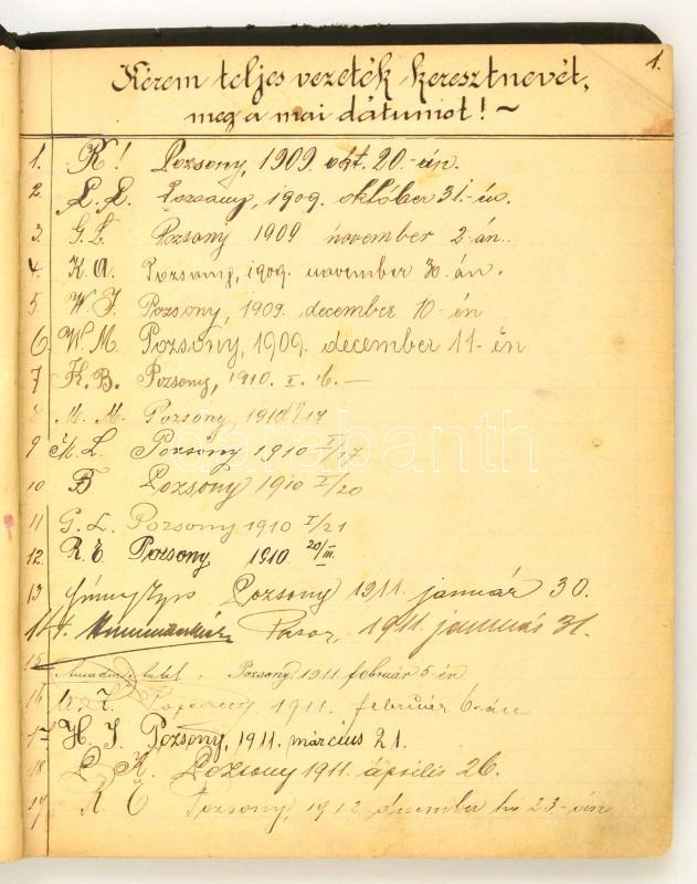 1909 Érdekes, kérdés-felelet formájában írt emlékkönyv. 10 oldalon kör... https://www.darabanth.com/de/333-Fernauktion/333.0/Kunst-Dokumente-andere-Sammelgebiete/Dokument~500019/1909-Erdekes-kerdes-felelet-formajaban-irt-emlekkonyv-10-oldalon-korkerdesek-sok-vala~II1866851