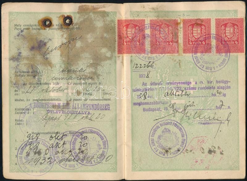 1926-1932 Magyar Királyság fényképes útlevele, Badál Ede I. kerületi e... https://www.darabanth.com/de/333-Fernauktion/333.0/Kunst-Dokumente-andere-Sammelgebiete/Dokument~500019/1926-1932-Magyar-Kiralysag-fenykepes-utlevele-Badal-Ede-I-keruleti-eloljaro-es-feleseg~II1870545