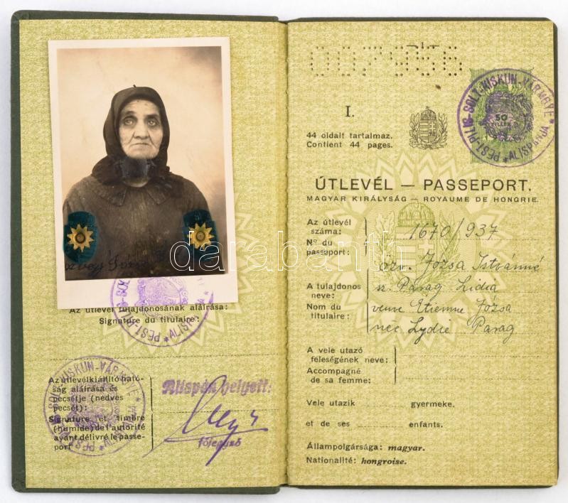 1937 Keményfedeles útlevél / Hungarian passport https://www.darabanth.com/de/333-Fernauktion/333.0/Kunst-Dokumente-andere-Sammelgebiete/Dokument~500019/1937-Kemenyfedeles-utlevel-Hungarian-passport~II1860545