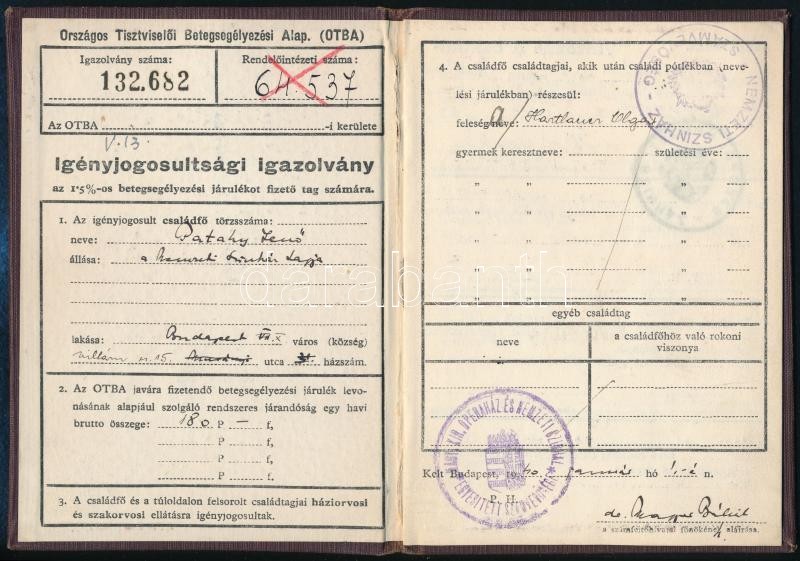 Beschreibung: 1940 Pataky Jenő (1914-1996) színész két igazolványa