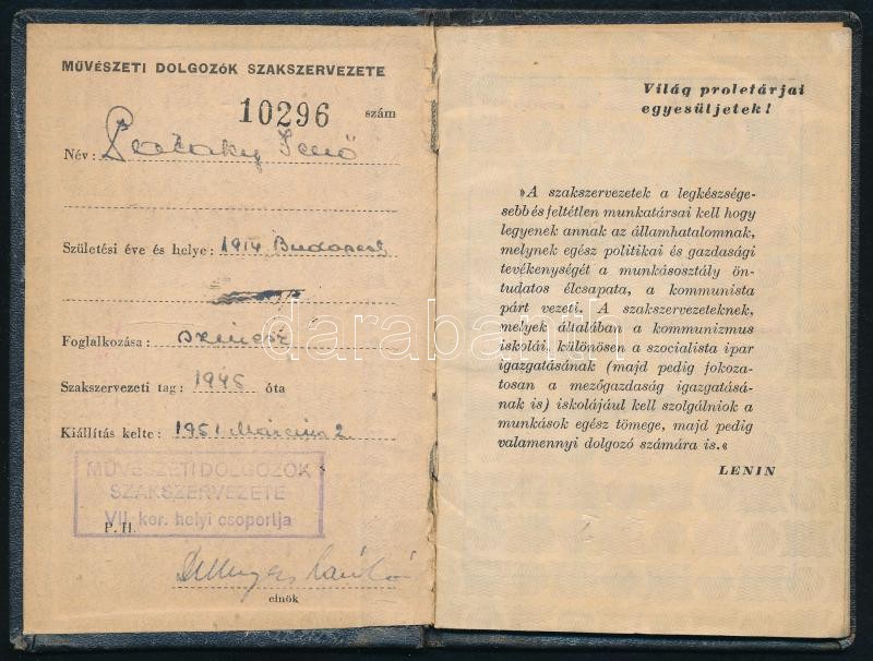 1940 Pataky Jenő (1914-1996) színész két igazolványa https://www.darabanth.com/de/333-Fernauktion/333.0/Kunst-Dokumente-andere-Sammelgebiete/Dokument~500019/1940-Pataky-Jeno-1914-1996-szinesz-ket-igazolvanya~II1866848