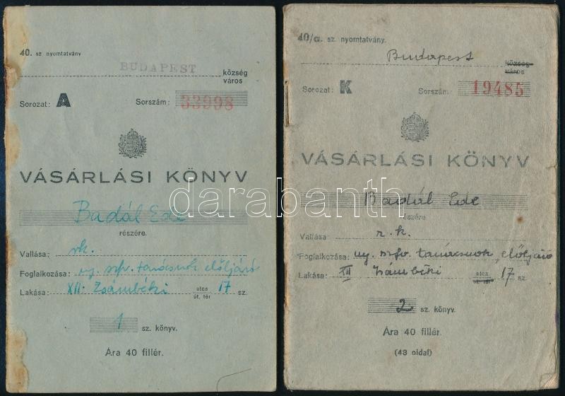 1941-1942 Badál Ede I. kerületi elöljáró 2 vásárlási könyve, számos be... https://www.darabanth.com/de/333-Fernauktion/333.0/Kunst-Dokumente-andere-Sammelgebiete/Dokument~500019/1941-1942-Badal-Ede-I-keruleti-eloljaro-2-vasarlasi-konyve-szamos-bejegyzessel~II1870546