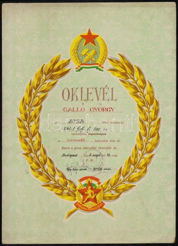 1954-1955 Bp., Sportoklevelek a kommunizmus időszakából, 2 db https://www.darabanth.com/de/333-Fernauktion/333.0/Kunst-Dokumente-andere-Sammelgebiete/Dokument~500019/1954-1955-Bp-Sportoklevelek-a-kommunizmus-idoszakabol-2-db~II1868589