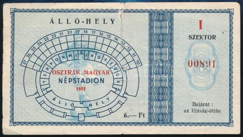 1955 Állóhely jegy a Népstadionban az osztrák-magyar meccsre, szakadás... https://www.darabanth.com/de/333-Fernauktion/333.0/Kunst-Dokumente-andere-Sammelgebiete/Dokument~500019/1955-Allohely-jegy-a-Nepstadionban-az-osztrak-magyar-meccsre-szakadassal~II1866822