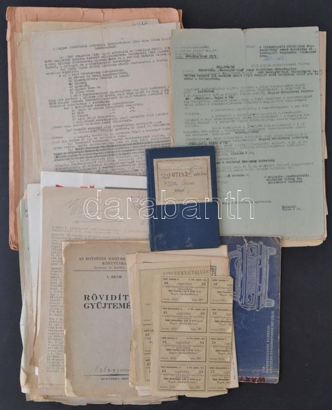Vegyes okmány tétel: szelvények, dokumentumok, stb., érdekes anyag https://www.darabanth.com/de/333-Fernauktion/333.0/Kunst-Dokumente-andere-Sammelgebiete/Dokument~500019/Vegyes-okmany-tetel-szelvenyek-dokumentumok-stb-erdekes-anyag~II1869579