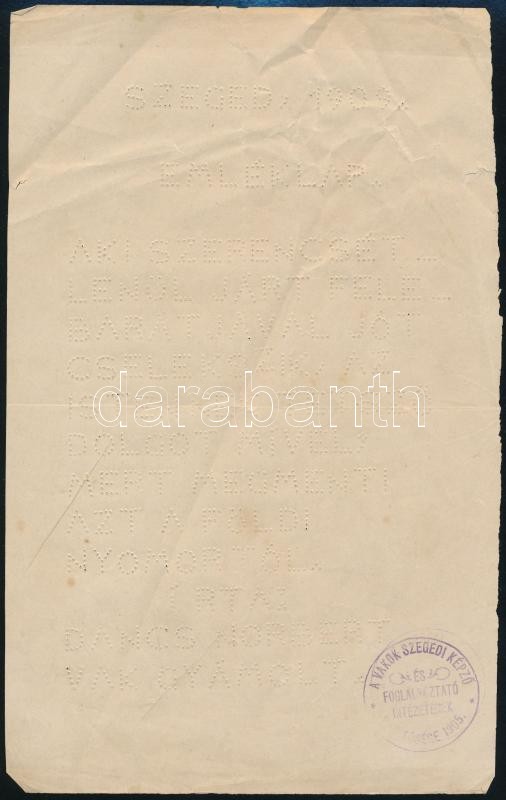 1909 Vak írással írt nyomtatvány https://www.darabanth.com/de/333-Fernauktion/333.0/Kunst-Dokumente-andere-Sammelgebiete/Drucksachen~500034/1909-Vak-irassal-irt-nyomtatvany~II1866823