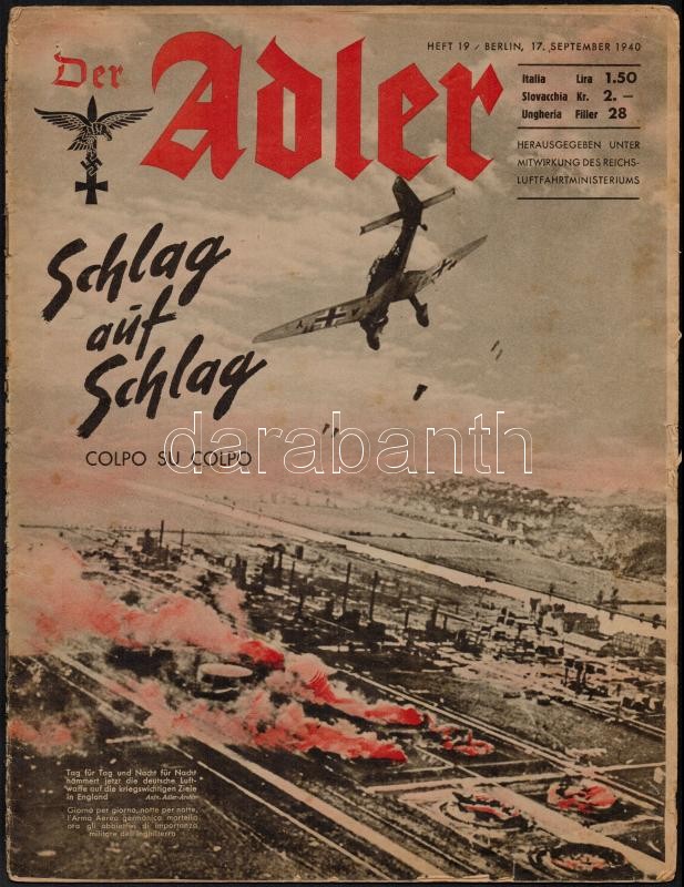 1940 Der Adler, Heft 19, 31p https://www.darabanth.com/de/333-Fernauktion/333.0/Kunst-Dokumente-andere-Sammelgebiete/Drucksachen~500034/1940-Der-Adler-Heft-19-31p~II1866809