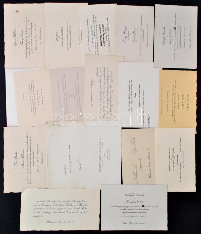 cca 1930 18 db esküvői meghívó https://www.darabanth.com/de/333-Fernauktion/333.0/Kunst-Dokumente-andere-Sammelgebiete/Drucksachen~500034/cca-1930-18-db-eskuvoi-meghivo~II1862824