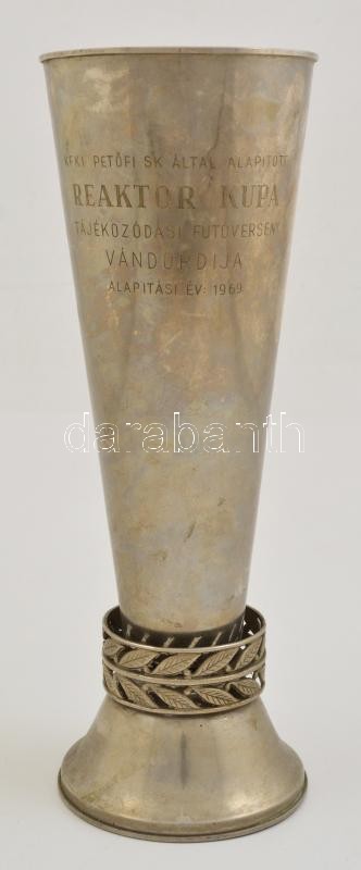 Beschreibung: cca 1969 A KFKI Petőfi SK által alapított Reaktor Kupa tájékozódási futóverseny vándordíja, fém, m: 34 cm