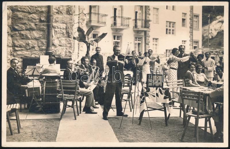 cca 1925 Lillafüred, érdekes fotó a palotaszálló teraszán játszó zenek... https://www.darabanth.com/de/333-Fernauktion/333.0/Kunst-Dokumente-andere-Sammelgebiete/Foto~500022/cca-1925-Lillafured-erdekes-foto-a-palotaszallo-teraszan-jatszo-zenekarrol-es-szalloven~II1869383