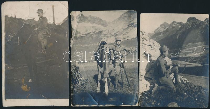 Beschreibung: 1914-1918 Vegyes katonai fotó tétel, 7 db, változó állapotban, kettő felületén törésnyomokkal, az egyiken folttal, 11x8 cm