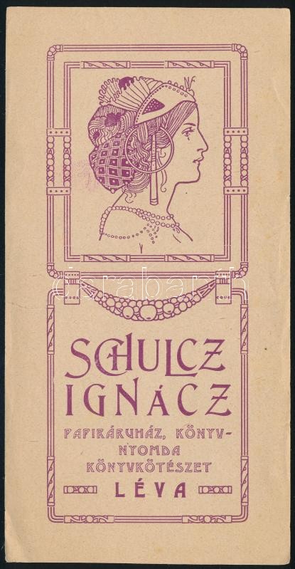 Schulz Ignác papíráruház könyvnyomda Léva számolócédula, kis szakadáss... https://www.darabanth.com/de/333-Fernauktion/333.0/Kunst-Dokumente-andere-Sammelgebiete/Werbungen~500025/Schulz-Ignac-papiraruhaz-konyvnyomda-Leva-szamolocedula-kis-szakadassal~II1868708