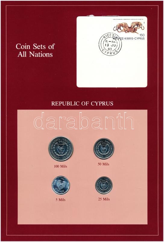 Cyprus 1982. 5 Mils - 100 Mils (4xdiff) "Coin Sets of All Nations" coin set on cardboard with stamp C:UNC