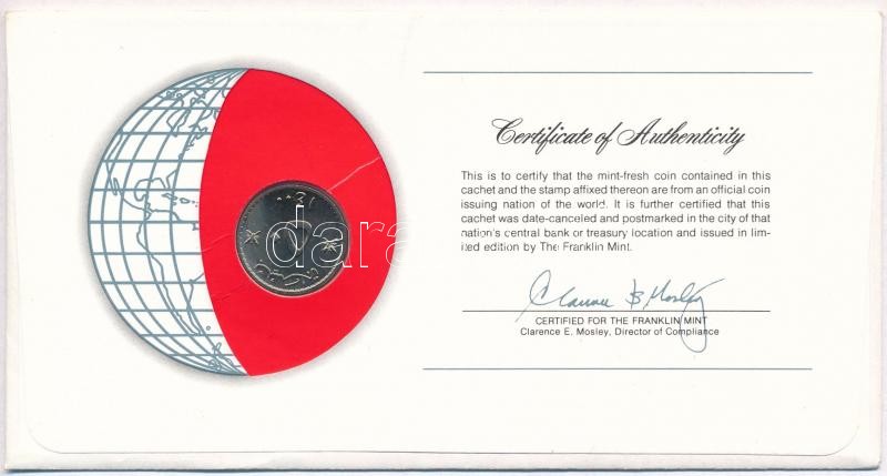Omán 1979. 50b "Nemzetek pénzérméi" felbélyegzett borítékban, bélyegzéssel, holland nyelvű leírással T:1-