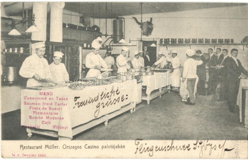 1905 Budapest V. Restaurant Müller az Országos Kaszinó palotájában, ko... https://www.darabanth.com/de/334-Fernauktion/334.0/Ansichtskarten/Ungarn~2000006/1905-Budapest-V-Restaurant-Muller-az-Orszagos-Kaszino-palotajaban-konyha-belso-szakacsok-C3~II1871643