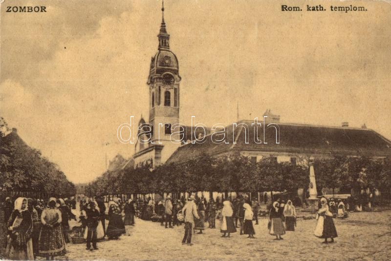 Zombor, Sombor; Római katolikus templom, piaci árusok, vásár. W. L. 31... https://www.darabanth.com/de/334-Fernauktion/334.0/Ansichtskarten/Vojvodina~2000011/Zombor-Sombor-Romai-katolikus-templom-piaci-arusok-vasar-W-L-317-Catholic-church-mark~II1874499