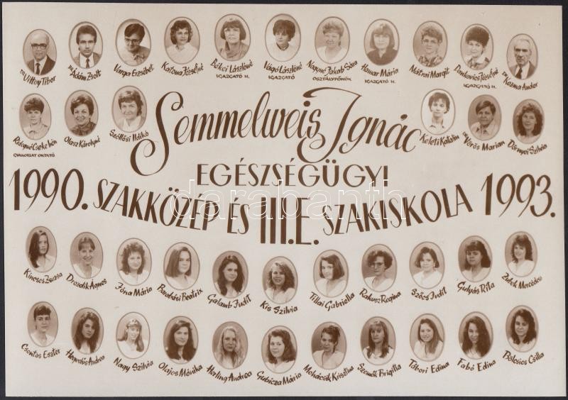 1993 Semmelweis Ignác Eü. Szakiskola tanárai és végzett növendékei, ki... https://www.darabanth.com/de/334-Fernauktion/334.0/Fotografie/Foto~2000108/1993-Semmelweis-Ignac-Eu-Szakiskola-tanarai-es-vegzett-novendekei-kistablo-17x24-cm~II1871760