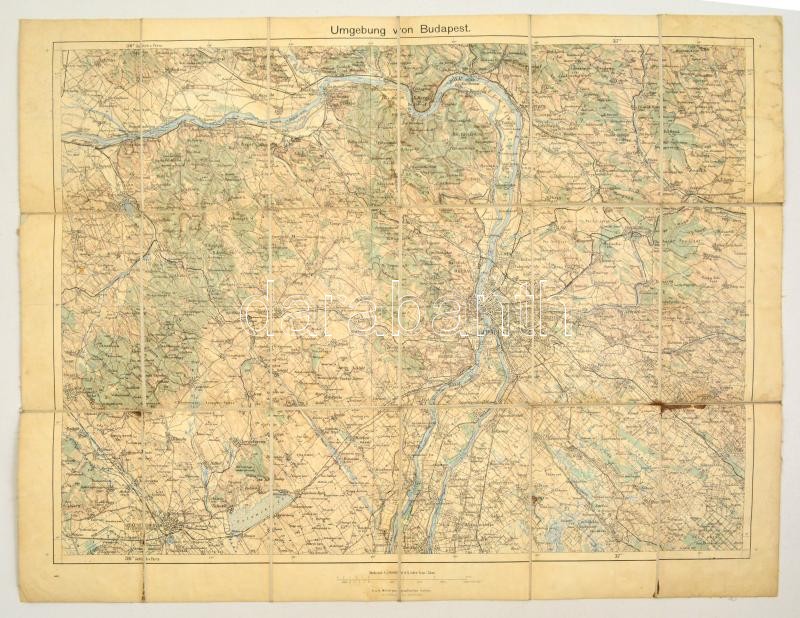 cca 1910 Budapest környékének katonai térképe. Vászonra vonva 60x46 cm https://www.darabanth.com/de/334-Fernauktion/334.0/Kunst-Dokumente-andere-Sammelgebiete/Landkarten~30/cca-1910-Budapest-kornyekenek-katonai-terkepe-Vaszonra-vonva-60x46-cm~II1847701