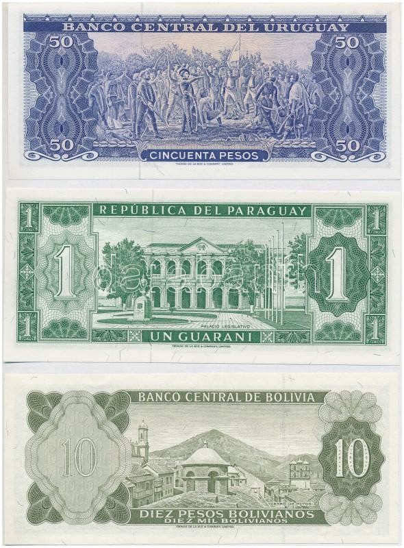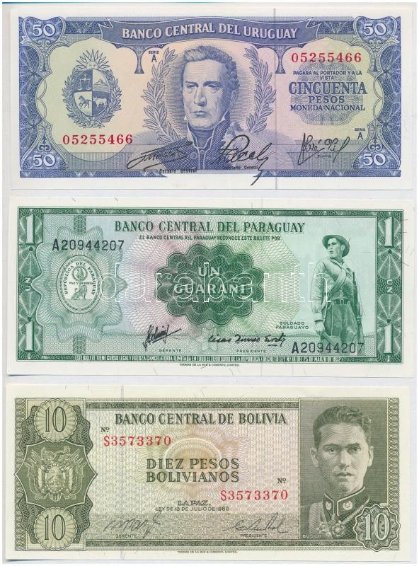 6db-os vegyes dél-amerikai bankjegy tétel, benne Argentína, Paraguay, Uruguay, Bolívia T:I,I-
