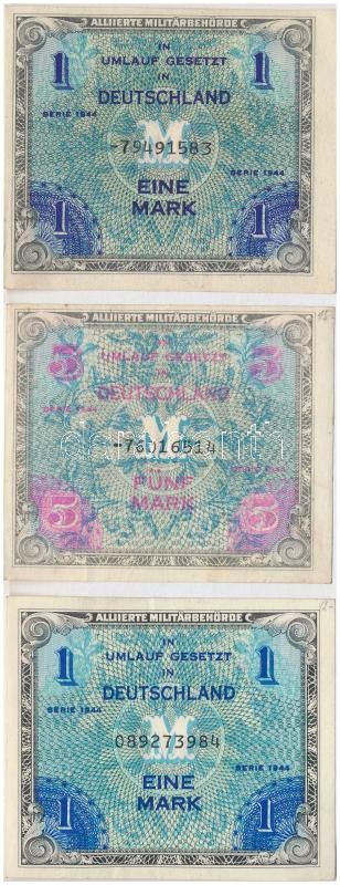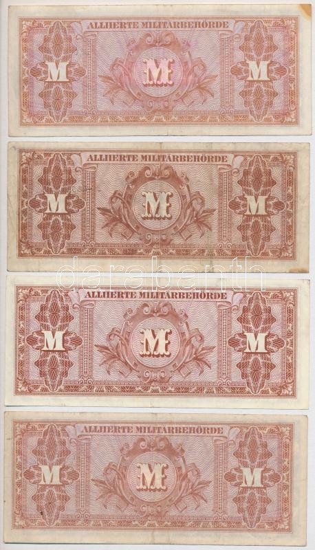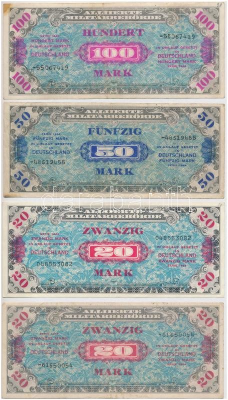 Német Harmadik Birodalom / Szövetséges megszállás 1944. 1M (2xklf) sorszámban 9 számjegy "F" nélkül, és sorszámban kötőjel, 8 számjegy F nélkül + 5M sorszámban kötőjel, 8 számjegy F nélkül + 20M (2xklf) sorszámban 9 számjegy "F" nélkül, és sorszámban kötőjel, 8 számjegy F nélkül + 50M sorszámban kötőjel, 8 számjegy F nélkül + 100M sorszámban kötőjel, 8 számjegy F nélkül T:III German Third Reich / Allied Occupation 1944. 1 Mark (2xdiff) 9 digit serial, without "F" and 8 digit serial with dash, without "F" + 5 Mark 8 digit serial with dash, without "F" + 20 Mark (2xdiff) 8 digit serial with dash, without "F" + 50 Mark 8 digit serial with dash, without "F" + 100 Mark 8 digit serial with dash, without "F" C:F