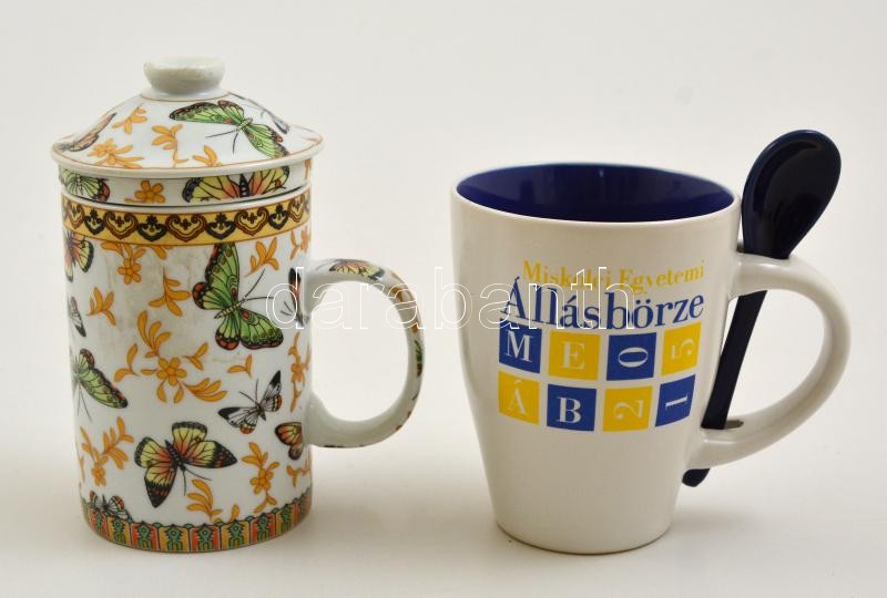Beschreibung: 2 porcelán teás bögre. Egyik kínai mintás beépített szűrővel, mások, használatlan, modern.