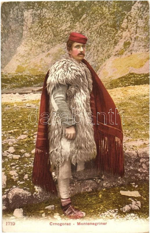 Crnogorac / Montenegriner / Montenegrin folklore, traditional costume.... https://www.darabanth.com/de/335-Fernauktion/335.0/Ansichtskarten/Folklore~2000050/Crnogorac-Montenegriner-Montenegrin-folklore-traditional-costume-J-Tosovic-1719~II1882023