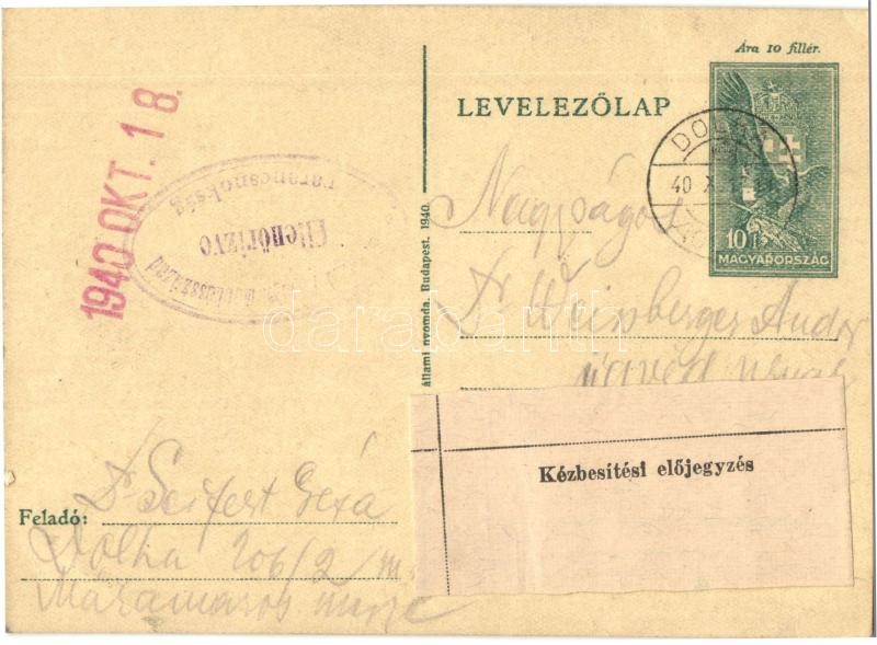 1940 Dr. Seifert Géza zsidó KMSZ (közérdekű munkaszolgálatos) levele a dolhai munkatáborból Dr. Weinburger Andor ügyvéd úrnak. 206/2 m. sz. / WWII Letter of a Jewish labor serviceman in the labor camp of Dovhe to his lawyer. Judaica + 10 f Ga. (EK)