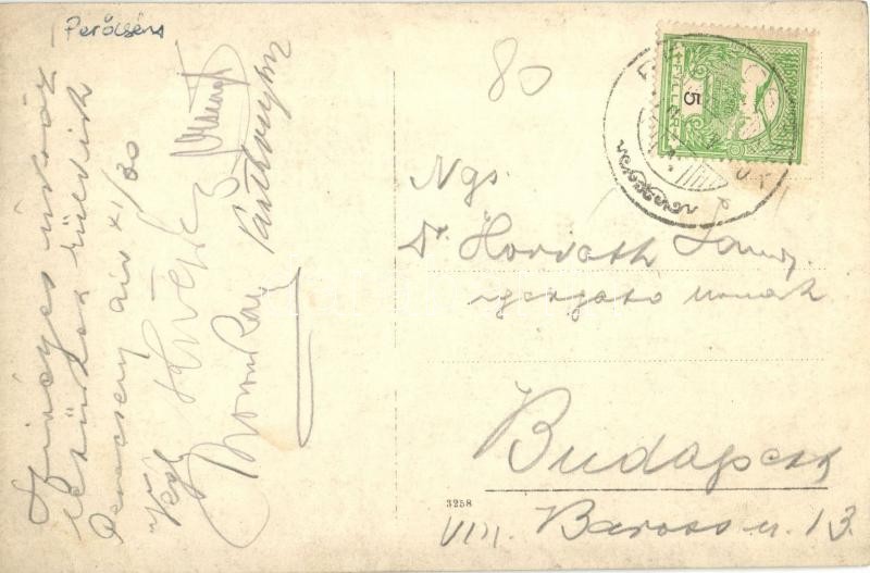 Perecseny, Perechyn, Perecin; Perecsényi Hitelszövetkezetek Központi Fogyasztási és Értékesítő Áruraktárának Fiókja, üzlet, háttérben a Bautlin vegyészeti gyár épületei / cooperative shop and storehouse, chemical plant's buildings in the background, factory. photo (EK)