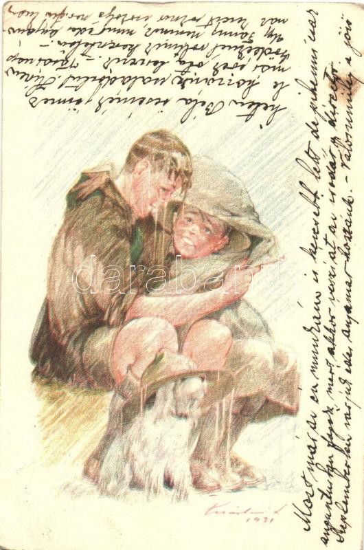 Beschreibung: A cserkész másokkal szemben gyengéd. Kiadja a Magyar Cserkészszövetség / Hungarian scout art postcard s: Márton L. (EK)