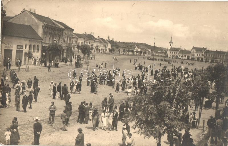 Beschreibung: 1925 Szászrégen, Reghin; Fő tér, Selma Beer, Johann Schön üzlete / main square, shops. Georg Heiter photo (EK)