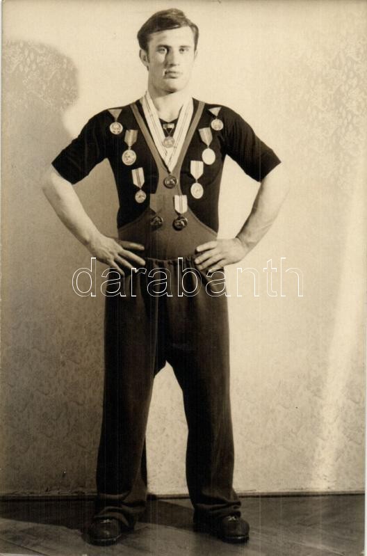 Sportoló érmekkel / Athlete with medals. photo https://www.darabanth.com/de/335-Fernauktion/335.0/Ansichtskarten/Sport~2000070/Sportolo-ermekkel-Athlete-with-medals-photo~II1881790