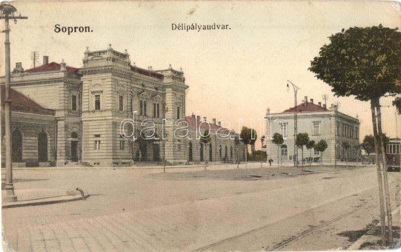 1911 Sopron, Oedenburg; Déli pályaudvar, vasútállomás, villamos. Kiadj... https://www.darabanth.com/de/335-Fernauktion/335.0/Ansichtskarten/Ungarn~2000004/1911-Sopron-Oedenburg-Deli-palyaudvar-vasutallomas-villamos-Kiadja-Monsberger-Gottfried-~II1878367