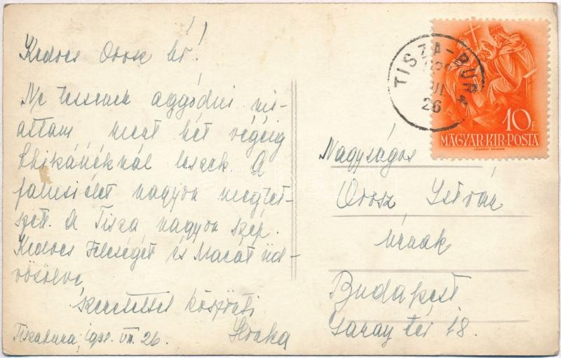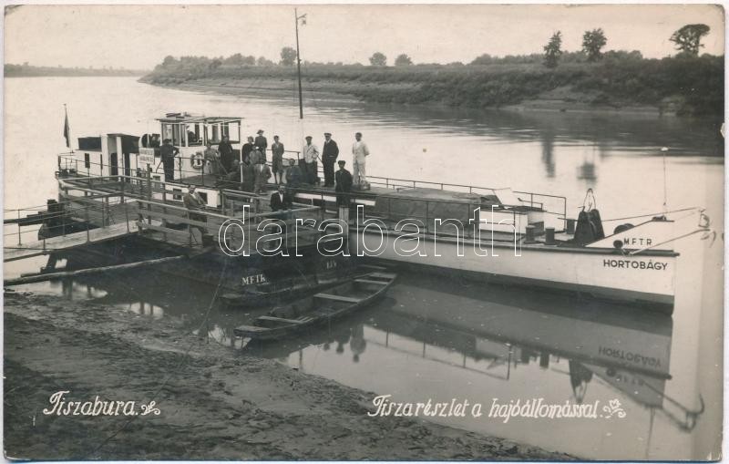 1938 Tiszabura, Tisza részlet a hajóállomással, Hortobágy MFTR motoros... https://www.darabanth.com/de/335-Fernauktion/335.0/Ansichtskarten/Ungarn~2000004/1938-Tiszabura-Tisza-reszlet-a-hajoallomassal-Hortobagy-MFTR-motoros-szemelyhajo-photo-EK~II1882988