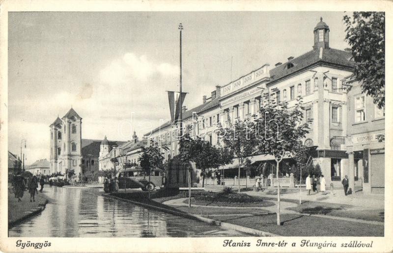Gyöngyös, Hanisz Imre tér, Hungária szálloda, autóbusz, országzászló (... https://www.darabanth.com/de/335-Fernauktion/335.0/Ansichtskarten/Ungarn~2000004/Gyongyos-Hanisz-Imre-ter-Hungaria-szalloda-autobusz-orszagzaszlo-Rb~II1880127