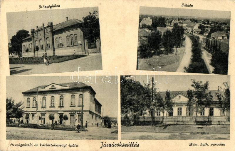 Beschreibung: Jászárokszállás, Községháza, Közbirtokossági épület, országzászló, Római katolikus parókia (EK)