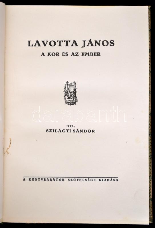 Szilágyi Sándor: Lavotta János. A kor és az ember. Bp., é.n., Könyvbar... https://www.darabanth.com/de/335-Fernauktion/335.0/Bucher/Bucher-Andere-kuriositaten~1000018/Szilagyi-Sandor-Lavotta-Janos-A-kor-es-az-ember-Bp-en-Konyvbaratok-Szovetsege-Kiad~II1878415