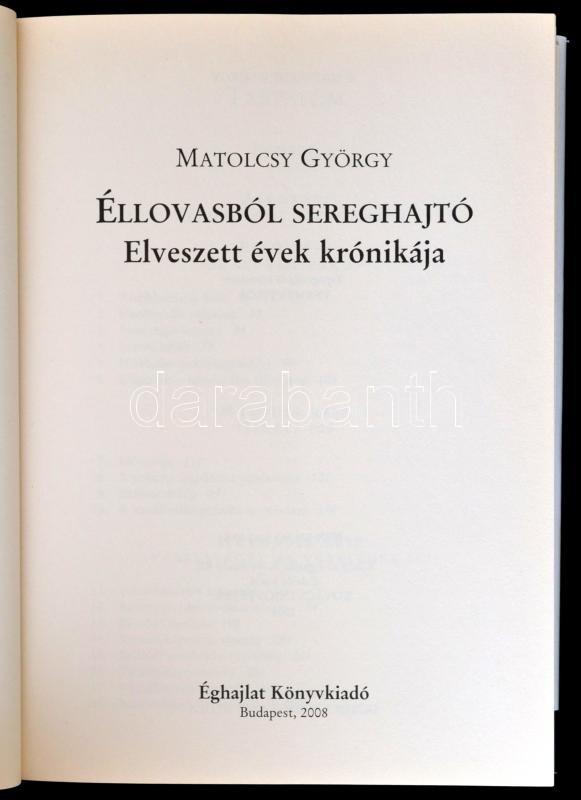 Matolcsy György: Éllovasból sereghajtó. Elveszett évek krónikája. Bp.,... https://www.darabanth.com/de/335-Fernauktion/335.0/Bucher/Bucher-Geschichte~1000004/Matolcsy-Gyorgy-Ellovasbol-sereghajto-Elveszett-evek-kronikaja-Bp-2008-Eghajlat-Kiado~II1882380