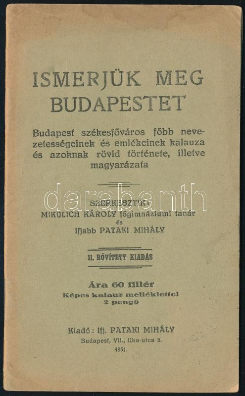 Ismerjük meg Budapestet. Budapest főbb nevezetességeinek és emlékeinek kalauza, rövid története és magyarázata. Szerk.: Mulich Károly, Pataki Mihály.Bp., 1931, Pataki Mihály. Tűzött papírkötésben
