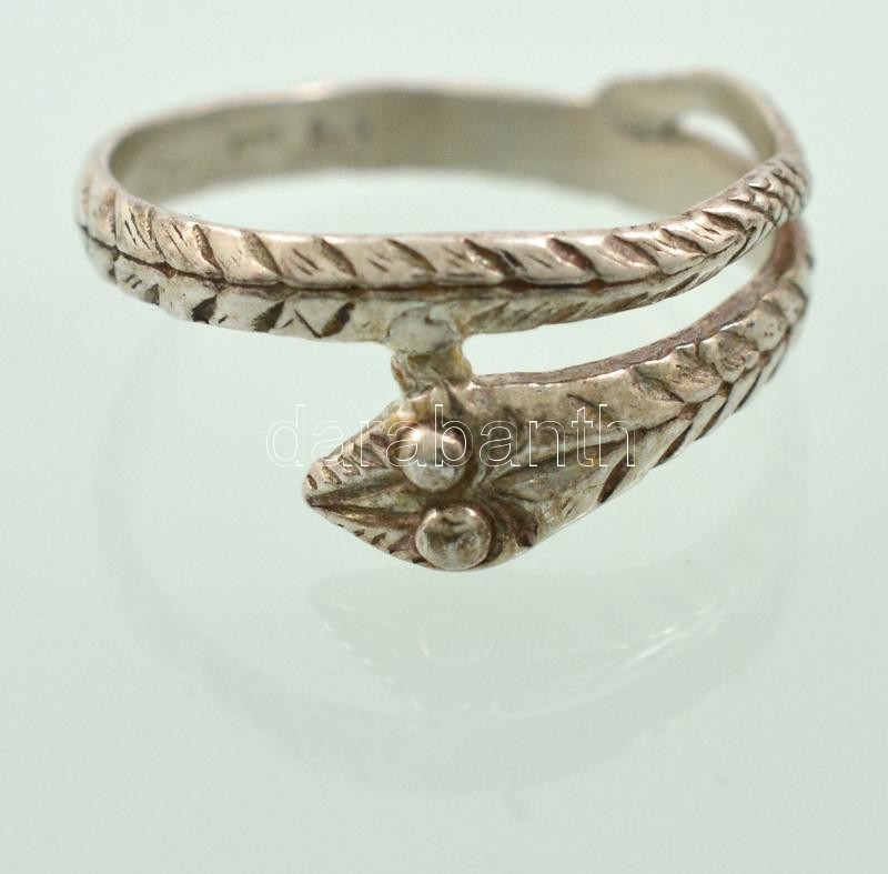 Ezüst(Ag) kígyós gyűrű, jelzett, méret: 56, nettó: 2,3 g https://www.darabanth.com/de/335-Fernauktion/335.0/Juwelen/Juwelen~2000083/EzustAg-kigyos-gyuru-jelzett-meret-56-netto-2-3-g~II1881888